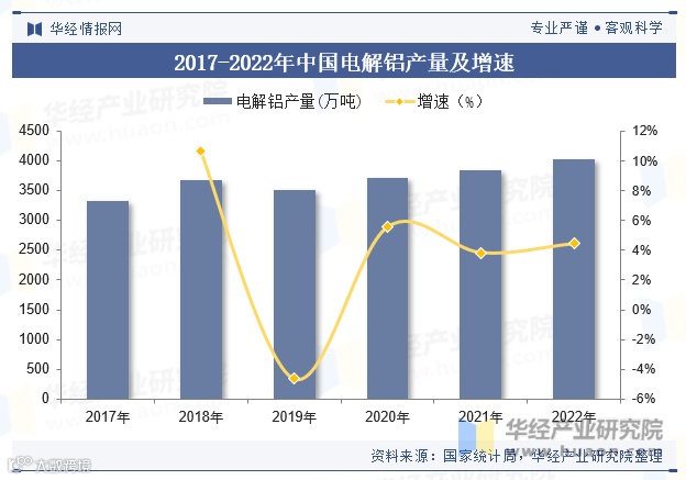 铝型材的核心原材料为电解铝,其原料为氧化铝,而铝土矿几乎是氧化铝的唯一来源,原材料结构较为单一。2022年,中国电解铝产量达4021.4万吨,为铝型材生产提供稳定供给支撑[k]。