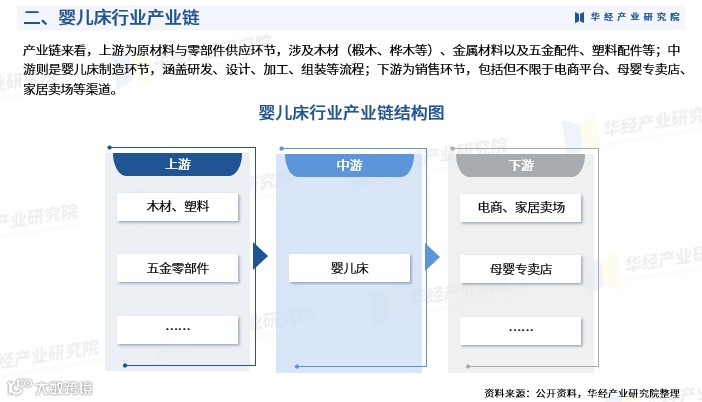 从产业链看,上游涵盖木材(如椴木、桦木)、金属材料、五金及塑料配件等原材料供应;中游为研发、设计、加工组装等制造环节;下游通过电商平台、母婴专卖店、家居卖场等渠道销售[k]。