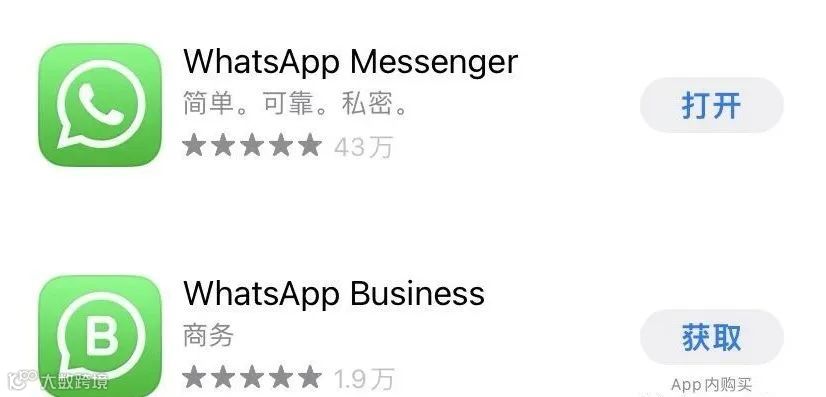 下面以苹果手机为例,为大家详细说明注册流程。在 App Store 中搜索 “WhatsApp”,映入眼帘的通常会有两款相关应用 。