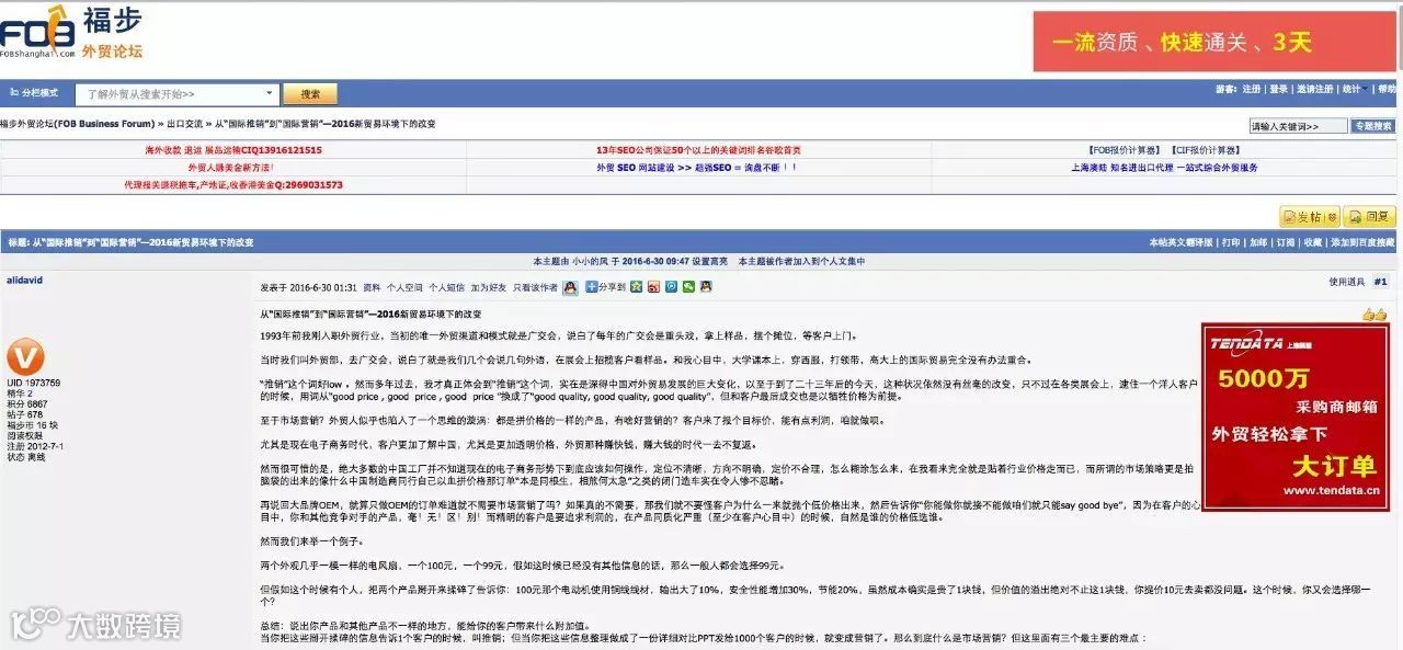 以下是“Alidavid”于2016年6月30日在福步【出口交流】板块发布的帖子截图: