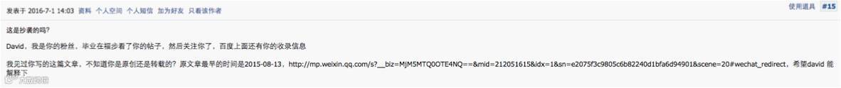 很快有读者质疑:“这是抄袭的吗?希望David能解释一下。”[k]。