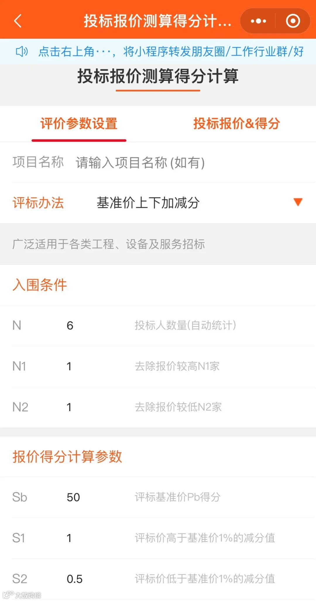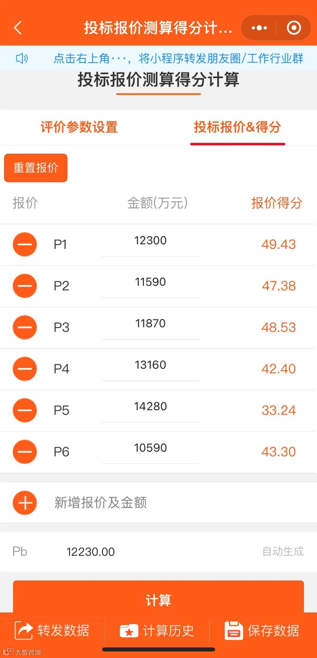 开标时,我们可以输入投标报价,快速计算报价得分,积极汇报领导。