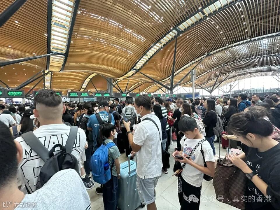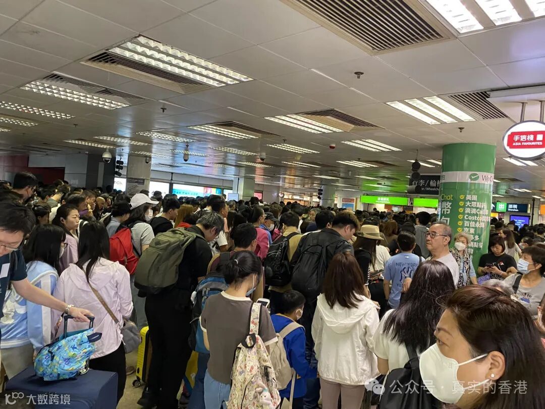 有网民昨天上午发帖,夸张到地铁出口,都已经是这么多人,估计港府也没想到会有这么多香港人去内地,实在失预算了。