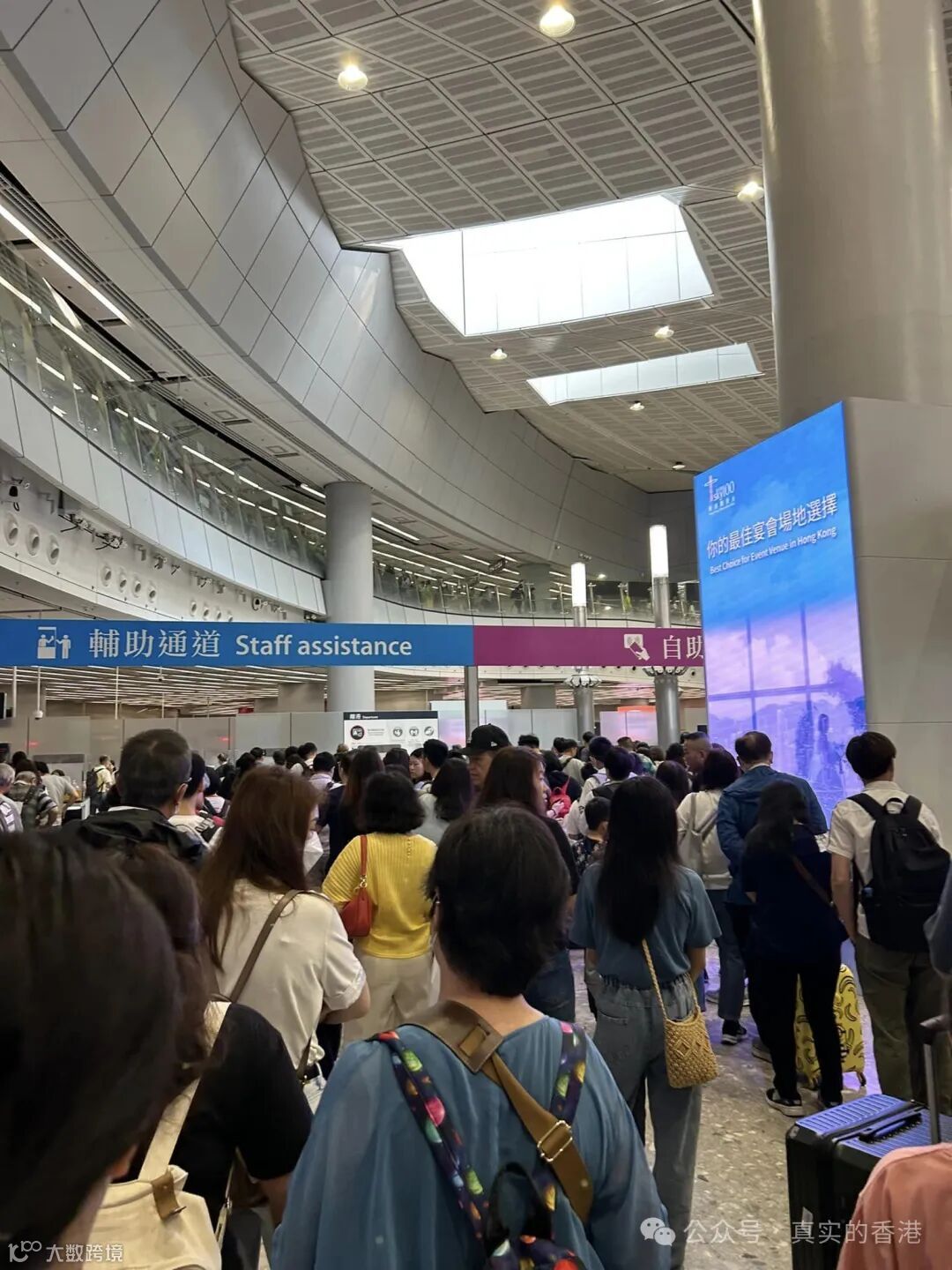上面是福田口岸,下面的罗湖口岸更恐怖,全部都是旅行团跟自由行的香港游客,一个个导游拿着小旗子,把口岸堵了个水泄不通。