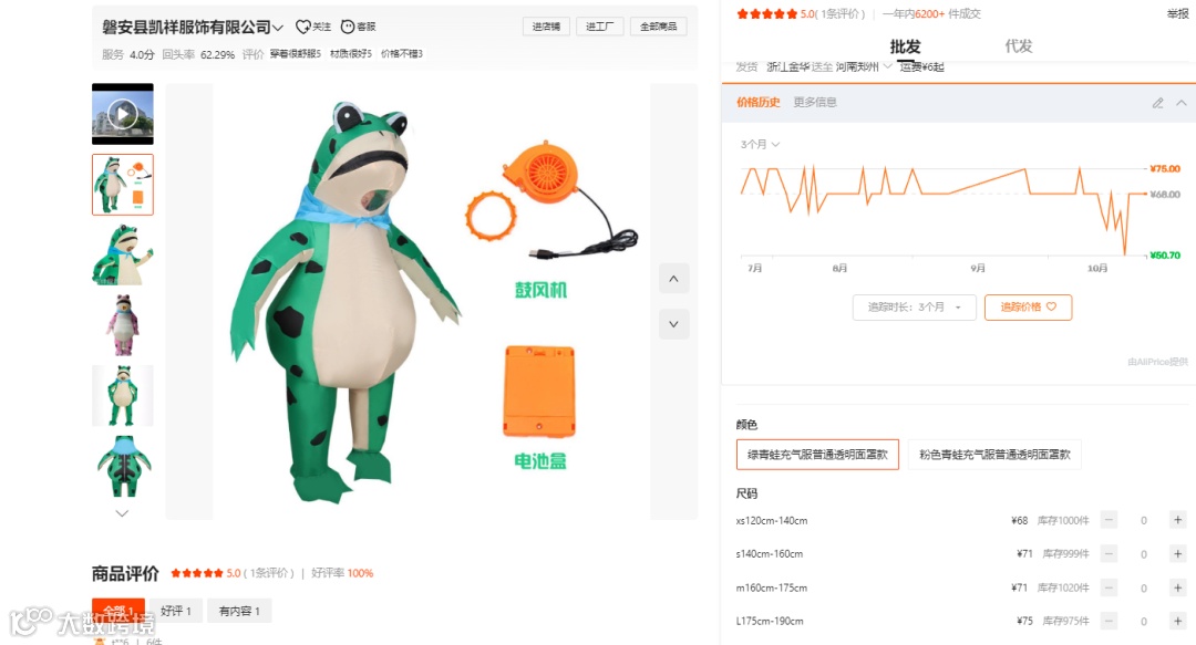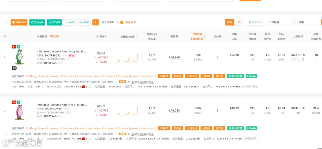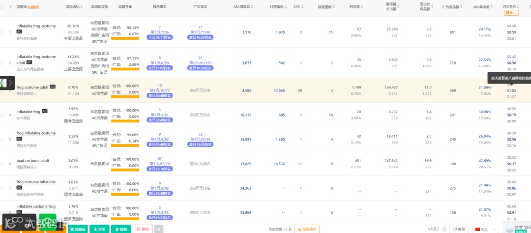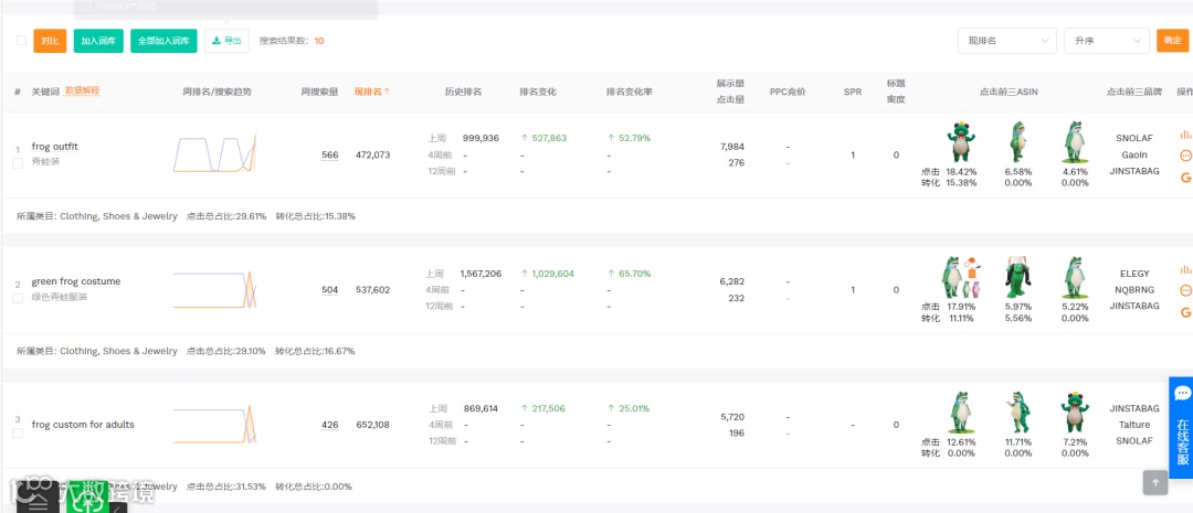 分析:这是性价比最高的词。用户搜索意图非常明确,就是要找“充气青蛙服装”,因此转化率极高。