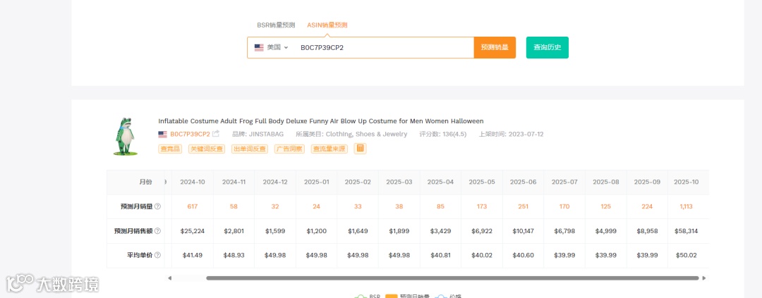 2025年10月:预测月销量暴增至 1,113件,销售额高达 $58,314。