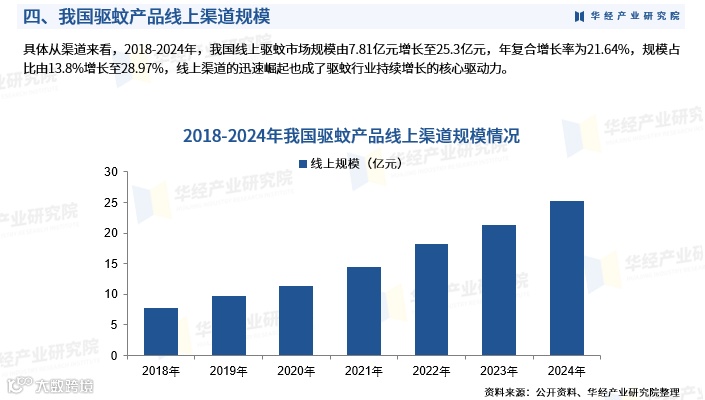 华经产业研究院研究团队采用桌面研究与定量、定性分析相结合的方法,运用SCP、SWOT、PEST等模型,全面剖析中国驱蚊行业的市场容量、产业链结构、经营模式、盈利水平及竞争格局[k]。基于行业发展趋势与实践经验,编制《2025-2031年中国驱蚊行业市场需求预测及投资战略规划报告》[k]。