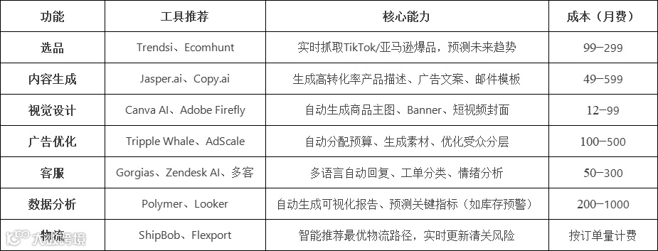 | 选品调研 | $5000/月 | $300/月 | 16倍 |