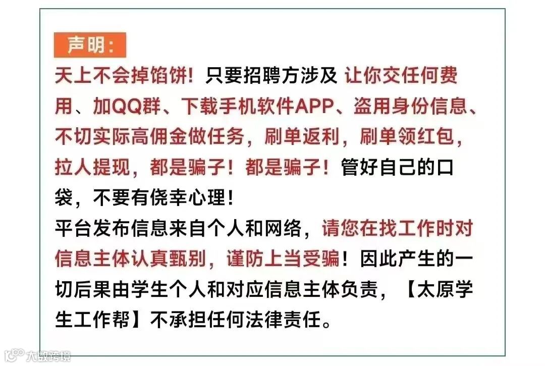 📢📢📢工作地址:太原各个区域均可安排!(也可安排住宿)
