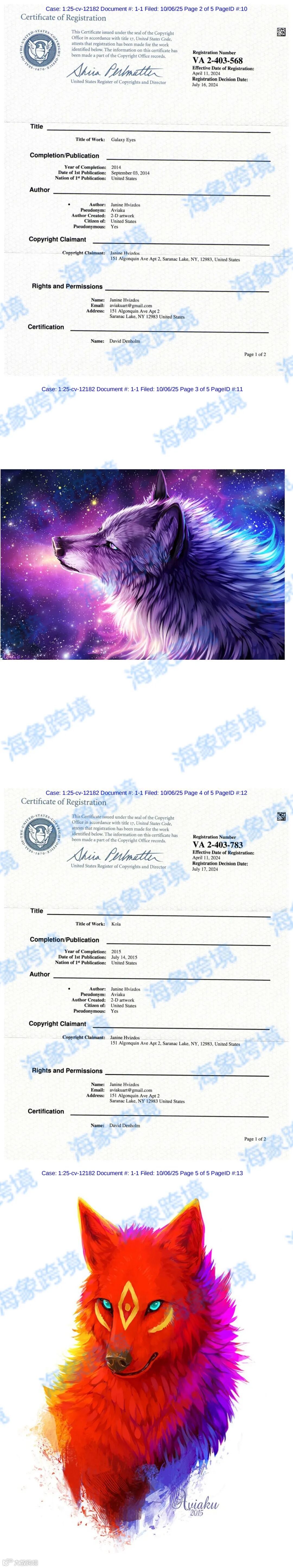 原告 Janine Hvizdos 是一位数字艺术家,创作半现实主义作品,专注于角色设计、概念艺术和插画。她以笔名 Aviaku 发表艺术作品已有十多年。她的艺术之旅始于童年,最初学习传统方法,然后通过自学 Adobe Photoshop 逐渐过渡到数字媒体。