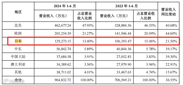 除欧洲外,日本正成为越来越多中国卖家关注的重点市场[k]。作为全球第三大经济体和第三大电商市场,日本人均年网购支出约1500美元,且地理位置邻近中国,物流时效快、资金周转效率高[k]。安克创新2024年上半年在日本市场营收达12.93亿元,占其总营收的13.4%,此前2023年上半年该数据为10.64亿元,占比15.06%[k]。日本已成为其仅次于美国和欧洲的核心市场,高峰期单国业绩接近整个欧洲市场水平[k]。