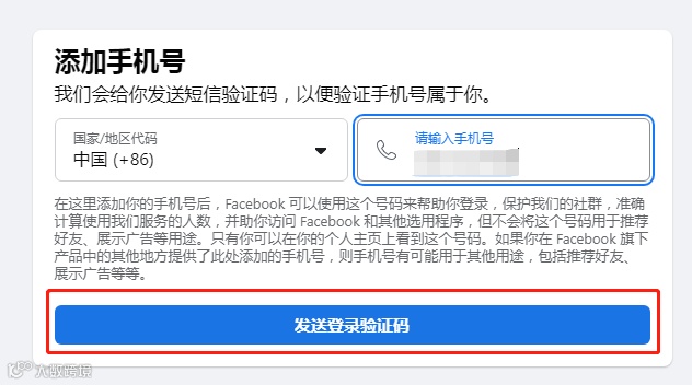 7.添加手机号,这里可用中国号码,注意更改区号,输入手机号