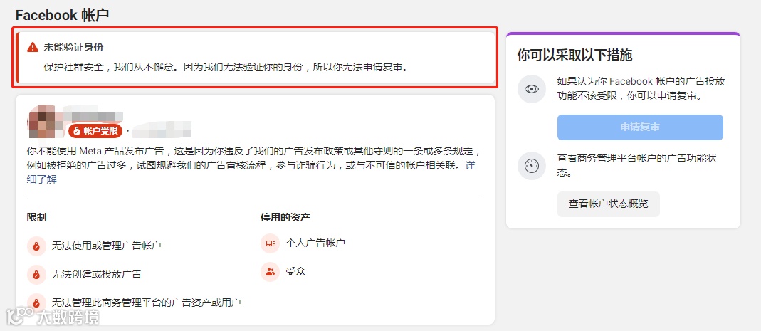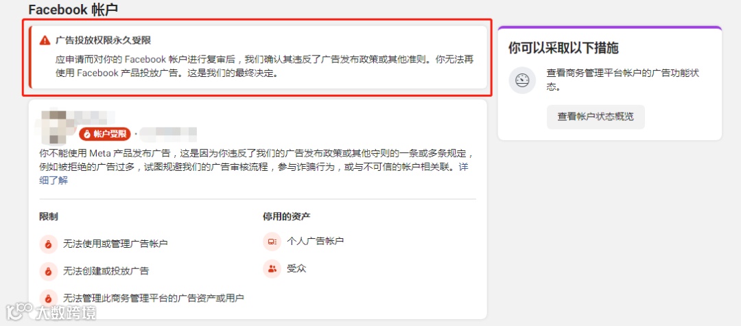 你的投放功能受限指的是您的Facebook个人账号不能投放广告或管理广告账户了。