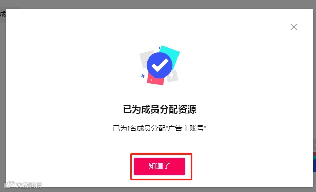 10.新成员已分配到广告账户,点击知道了