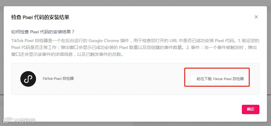 TikTok Pixel 自检器是一个在后台运行的 Google Chrome 插件,用于检查广告主打开的 URL 中是否已成功安装 Pixel 代码。