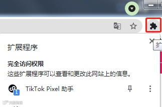 11.安装好后,在同一个浏览器页面打开您的网站,点击扩展程序