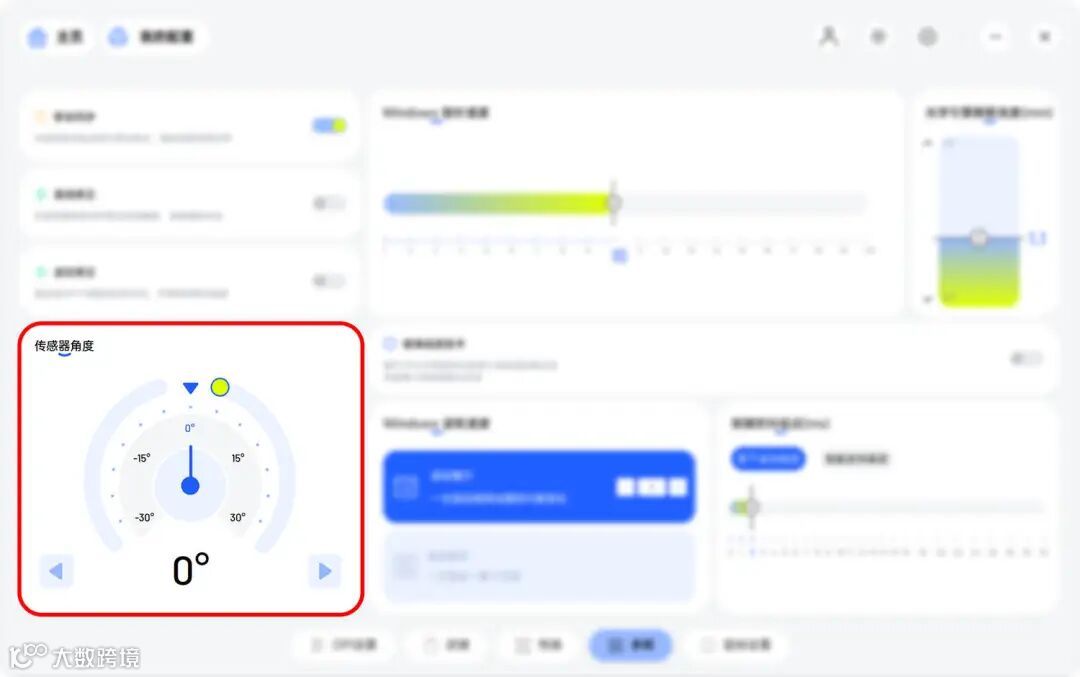 另外还有一个比较实用的功能是传感器角度调节,这对与习惯斜握鼠标的用户来说很实用,可以纠正握姿偏差,确保光标移动与实际手臂动作一致的功能,最常见的就用场景就是在FPs游戏中减少拉枪时的轨迹偏差。