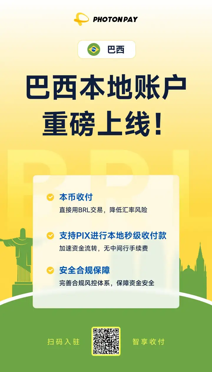 无论你是即将展业巴西的外贸企业,还是深耕亚马逊、速卖通等平台的跨境电商卖家,PhotonPay光子易此次上线的巴西本地账户,都将为你带来端到端的本地支付体验优化。
