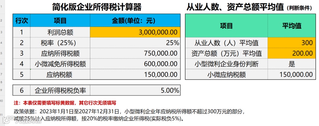 “为了帮大家快速算税,我整理了「小微企业所得税自动计算表」,输入年利润就能直接出结果,还会提醒是否符合优惠条件。