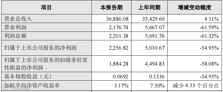 7月19日,北鼎股份(300824)发布2022年半年度业绩快报,公告显示,2022年1-6月营业总收入为36,886.08万元,比上年同期增长4.11%;归属于上市公司股东的净利润为2,256.82万元,比上年同期下滑54.95%。