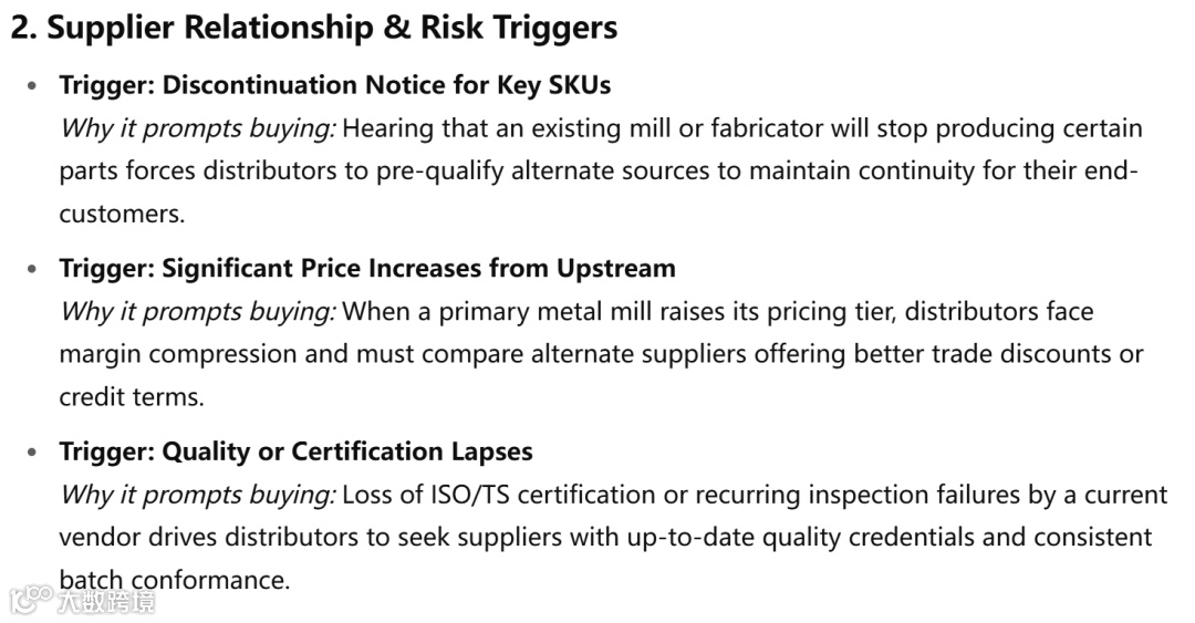 - 内部运营问题:现有供应商产品质量或交期出现波动[k]。