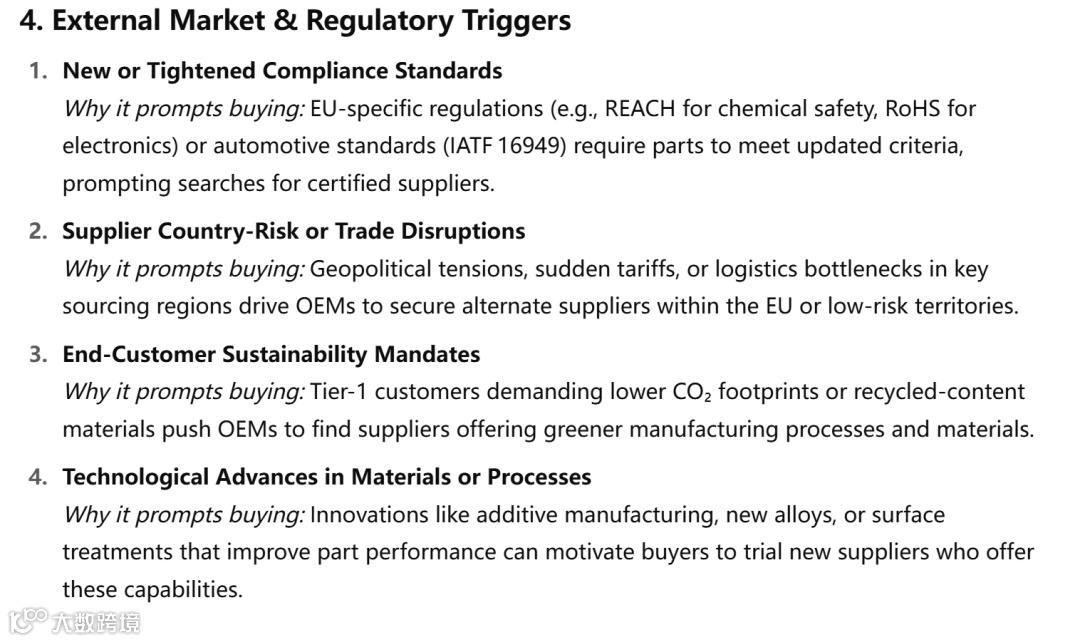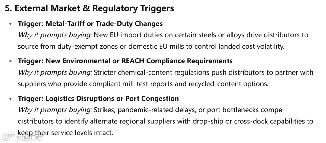 - 外部环境变化:新材料应用、法规更新或关税政策调整[k]。