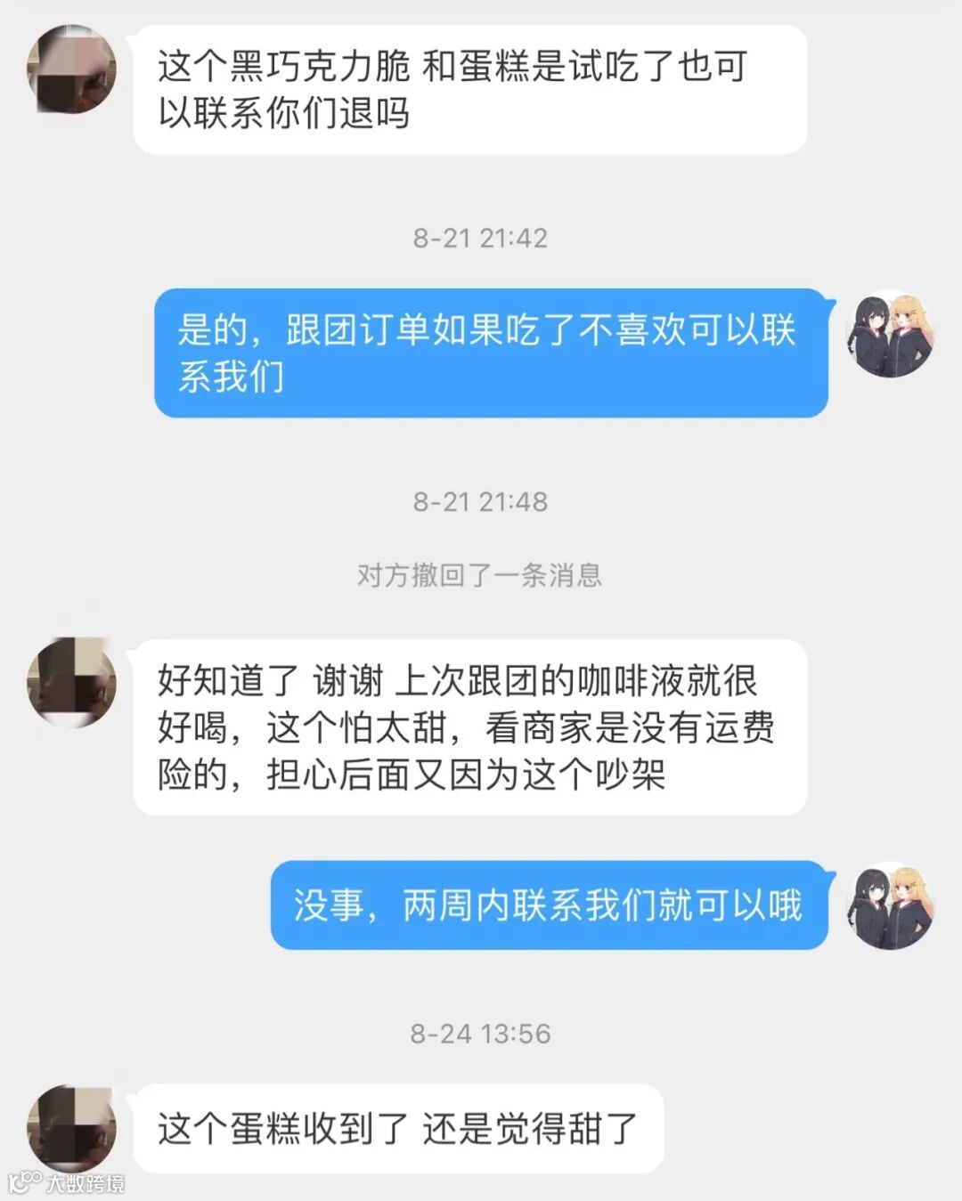 如果你因为我俩安利买了不喜欢的零食,一定要联系我们哦。