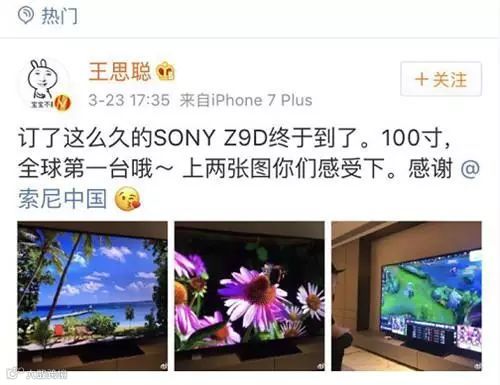 与此同时,王思聪购置最新款电视机并高调晒出“全球首台”照片,展现出其一贯张扬的消费风格[k]。