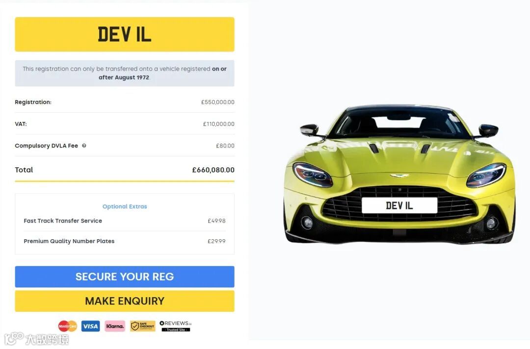 在英国,私人车牌(Private Plate)是一门很有趣的“生意”——也是一种小众的投资。车会不断贬值,但车牌(就像域名一样)却不会。一个好的车牌不仅是资产,更是个人的IP,反而可能随着时间升值。