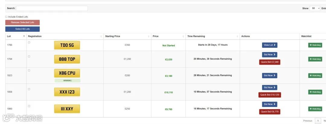 DVLA 拍卖每次都有数百个车牌,每个月有一周的时间进行拍卖。