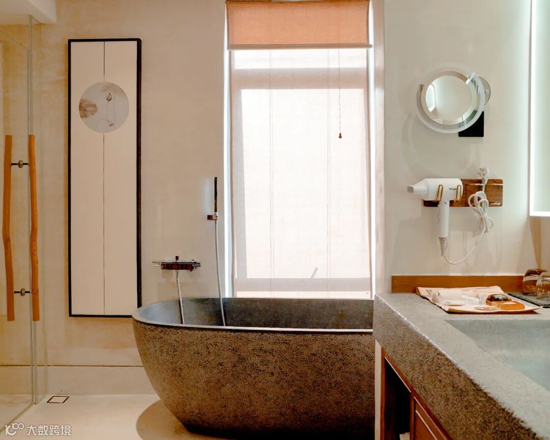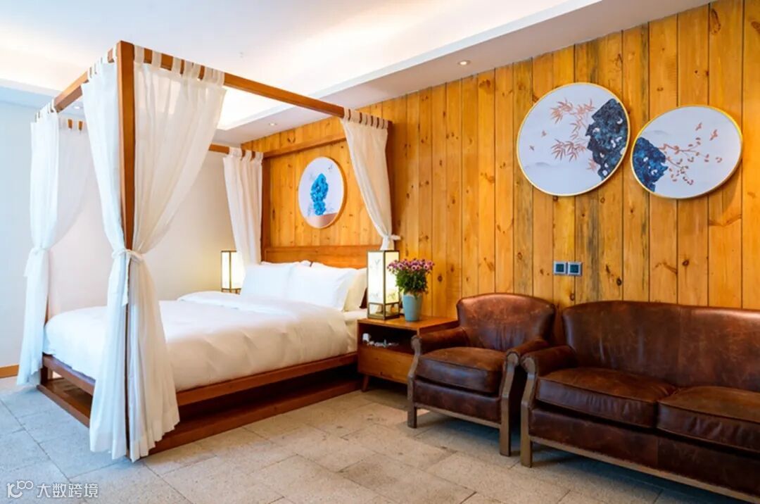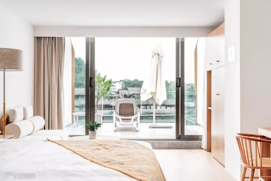 42间房自50㎡起跳,或能看到江景或能看到日落,每间房都有一个字,一句由创始人反复推敲、亲自挑选的诗,每个房间都是按照诗词的意境布景。