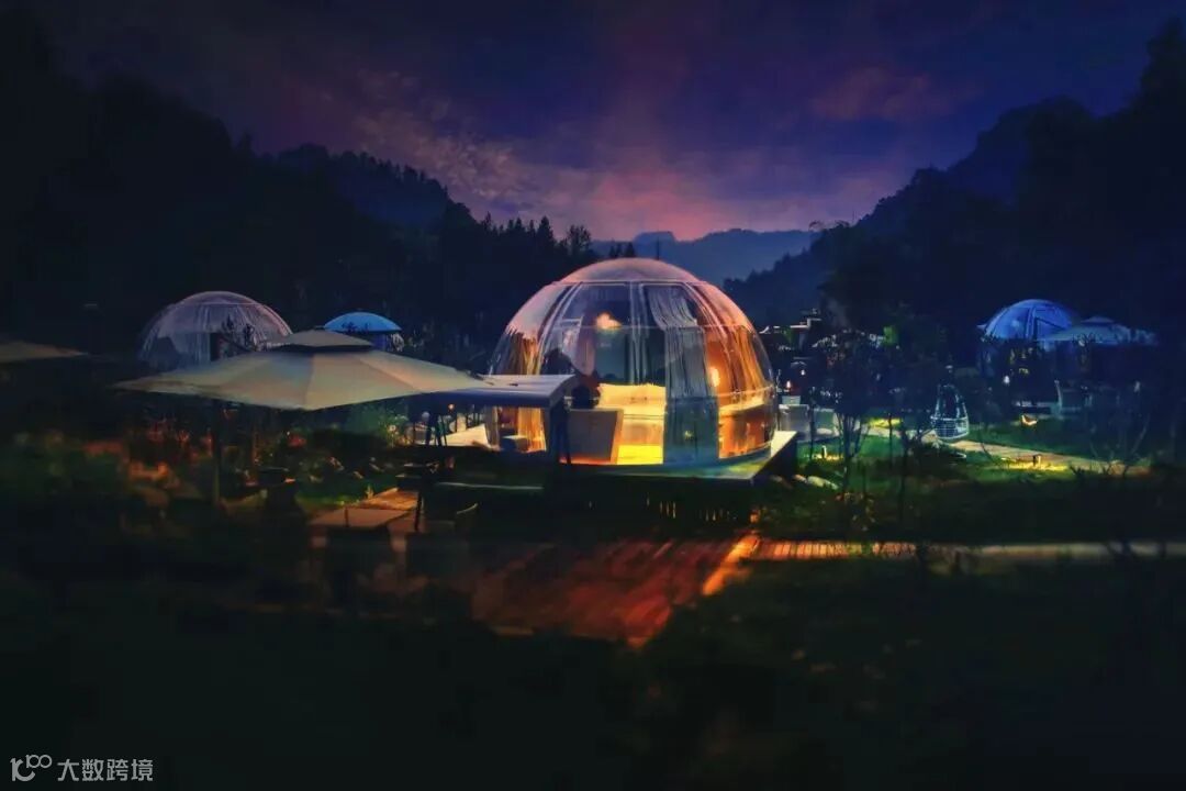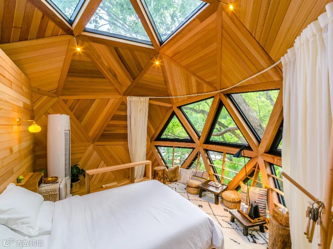 还有红遍ins的星空穹顶房,虽然不像三角树屋有那么丰富的亲子元素,但是能够实现所有的浪漫幻想,更适合夫妻情侣,或是闺蜜两人入住。