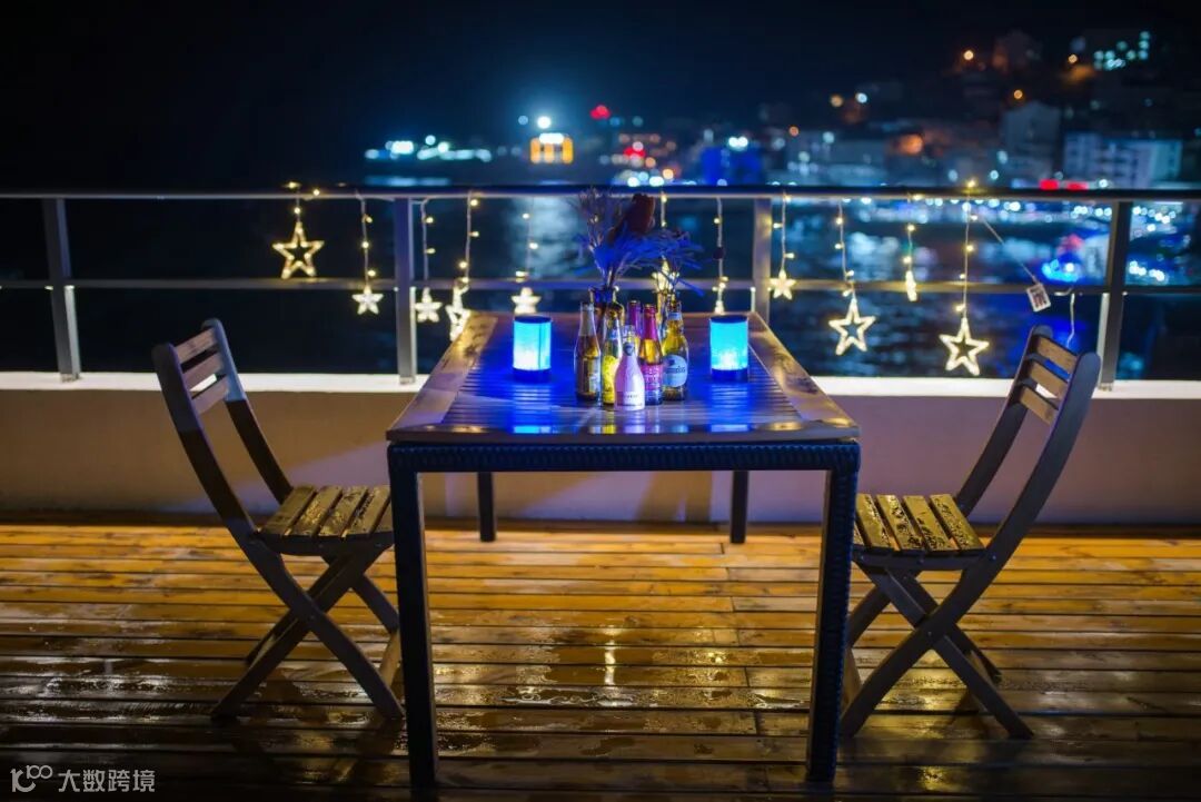 联排的落地窗将海景全部收入屋内,海岛风情浓郁,到顶楼的露台,配上一杯冰啤酒或香槟,吹着清凉的海风,立马就把烦恼抛之脑后,即使夜幕将近,也有别样的放松感。