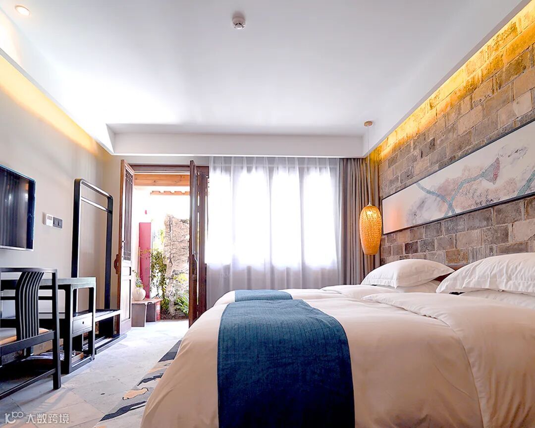 约5000㎡的空间内打造了35间客房,为了住客的居住舒适度,闲在尽量保证了每间房都有通透的视野,又充分保留闲庭院落的氛围,本次套餐包括180度江景大床房、山前山后豪华大床房。