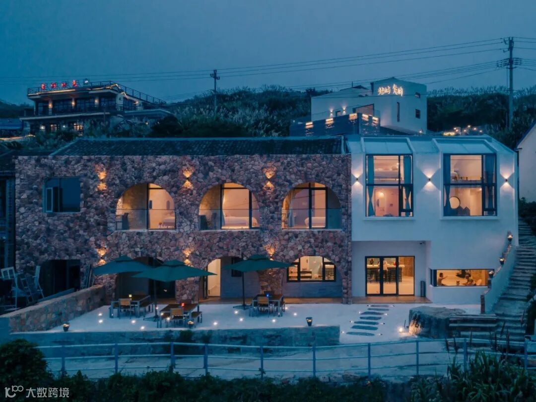 在东极岛庙子湖镇,有一座白色北欧风建筑格外显眼,它就是梵屿,背靠青山,正对海湾,占据了观赏东极日落的绝佳位置。