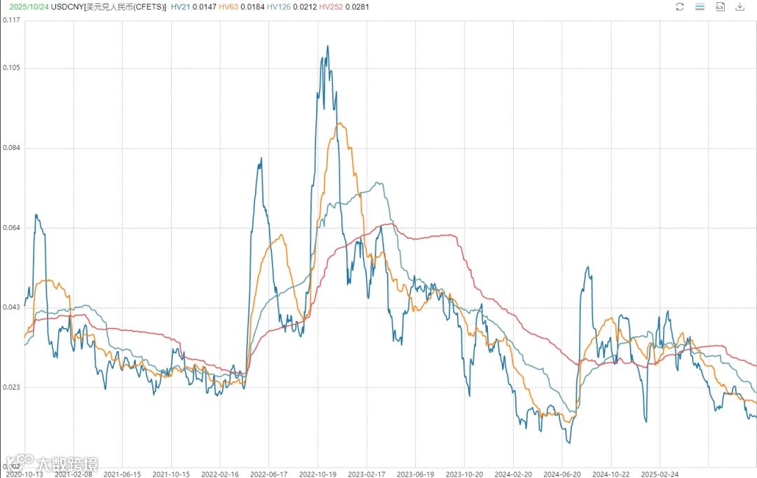 图二:USDCNY的1M、3M、6M以及1Y的历史波动率
