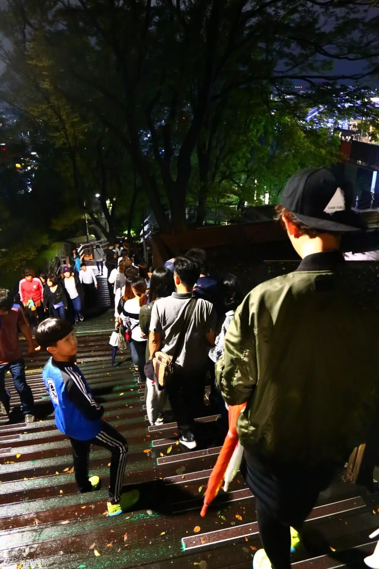 塔底下也有个观光台,就是挂满了锁的那种露台,可以看到首尔的夜景,但没有塔上视野好。我感觉拍夜景还是要在这里拍,因为塔上有玻璃罩着,拍出来反光很难看,只适合静静欣赏。
