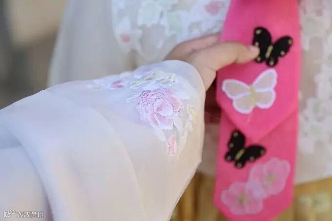 选的比较素雅的一款,精致的刺绣暗藏在布料里~在这里人们好多人找我们合照,我应该收点钱的。