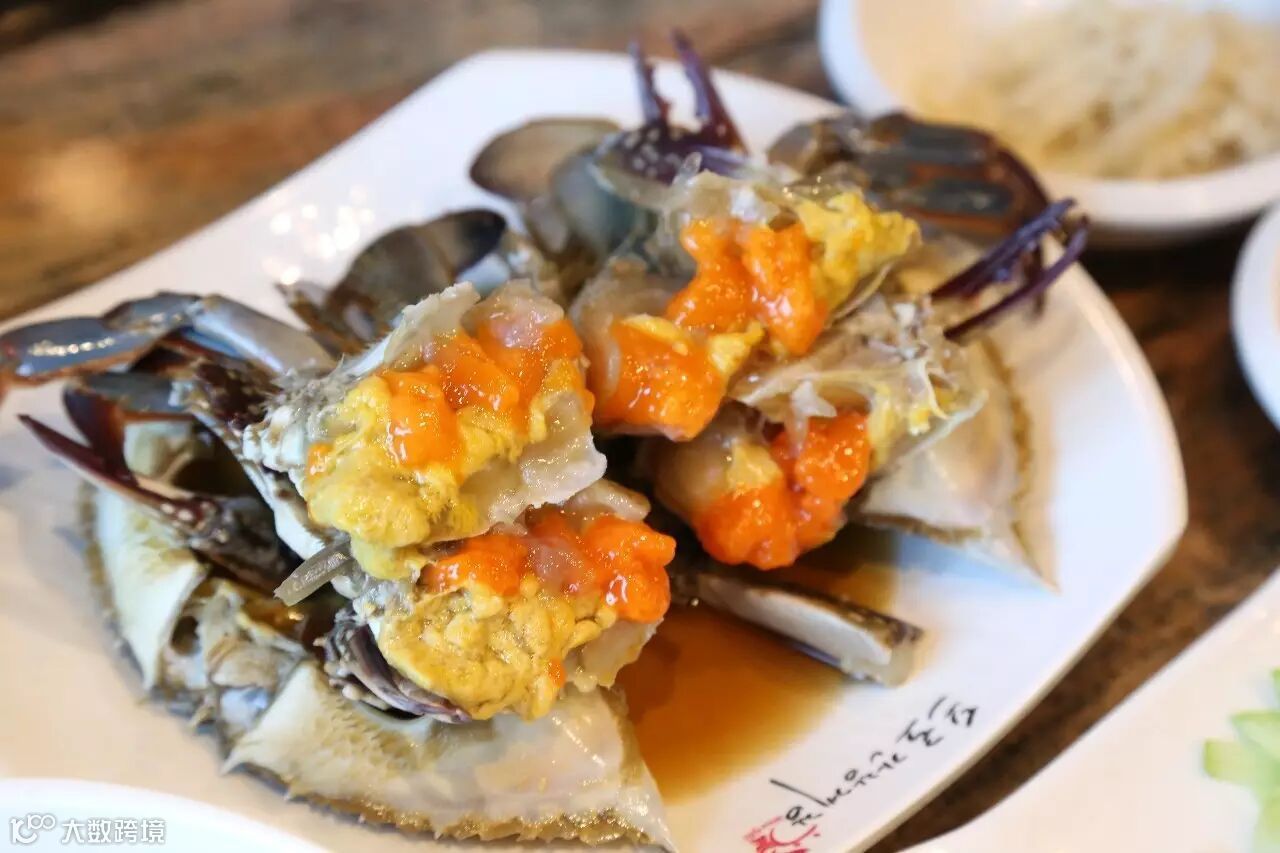 在国内吃螃蟹都是要沾姜醋汁的,可以祛寒。我发现韩国人是真的不怕这些,饭店全是冰水。