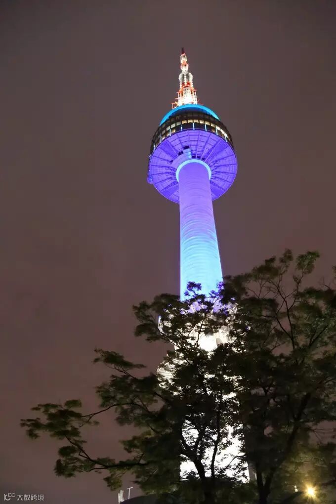 网上订票可以在负一层取票上塔,上塔都是坐电梯,很多人排队,塔里面也不大,我们坐在窗前看了看夜景,汉江上的几座桥灯火辉煌非常漂亮。一会就又排队下塔了,没什么意思,总的来说首尔塔可上可不上。在塔下也可以看美丽的夜景拍好看的照片。