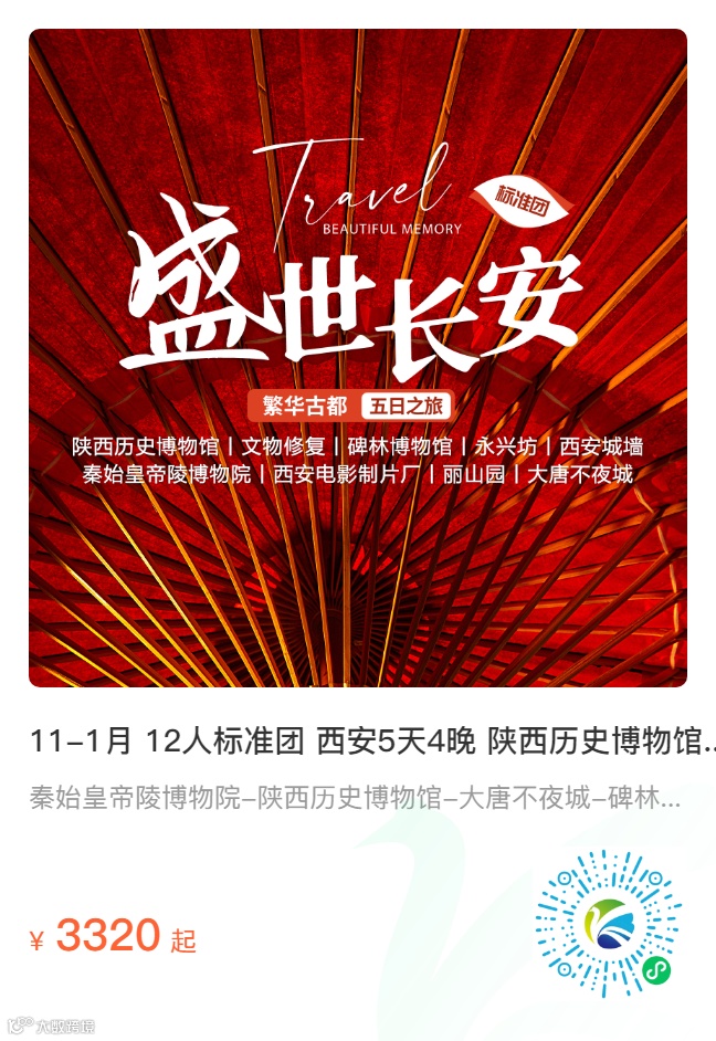 温馨提示:兵马俑博物馆出发日提前7天预约团体参观票,后续再报名预约上散客票几率较小,建议您至少提前一周报名。
