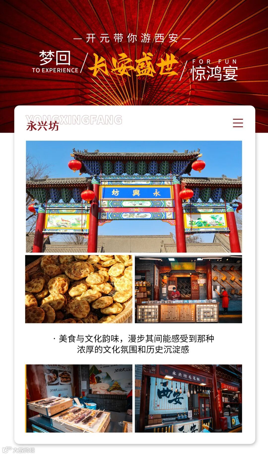 永兴坊在西安东城墙的中山门内,这里不仅仅是游客品尝美食的好去处,涵盖陕北、关中、陕南三个地区的地道美食,更是一个感受陕西文化的绝佳目的地。