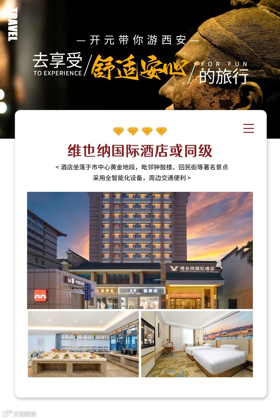 参考酒店:维也纳国际酒店(西安钟楼回民街旗舰店)或同级。