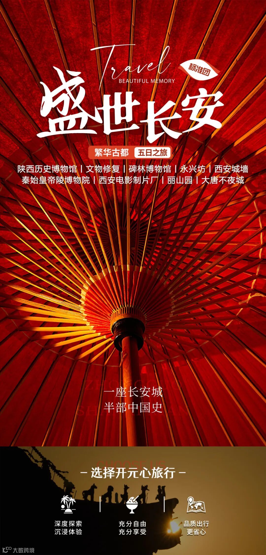 • 最后乘车(车程约10分钟)游览【大唐不夜城】(自由活动时间约3小时)