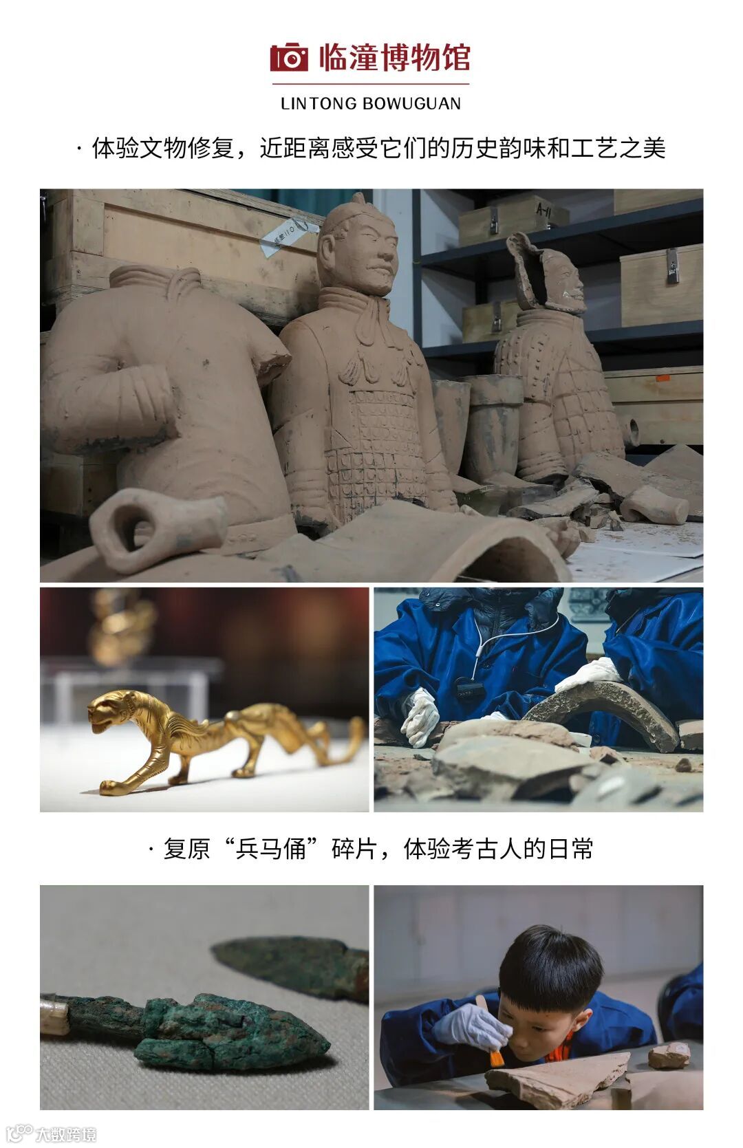• 餐后乘车(车程约10分钟)前往临潼博物馆体验文物修复(体验时间约1.5小时)