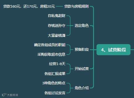 在以往的授课中,试营阶段是没有贷款和房租规则的,但在现实的经营中,任何人力、物品的使用都需要支付成本,所以把之前版本中介绍的规则挪到了在这里,并且修改了规则,将贷款与房租改为按照每周计算,而不是每月。