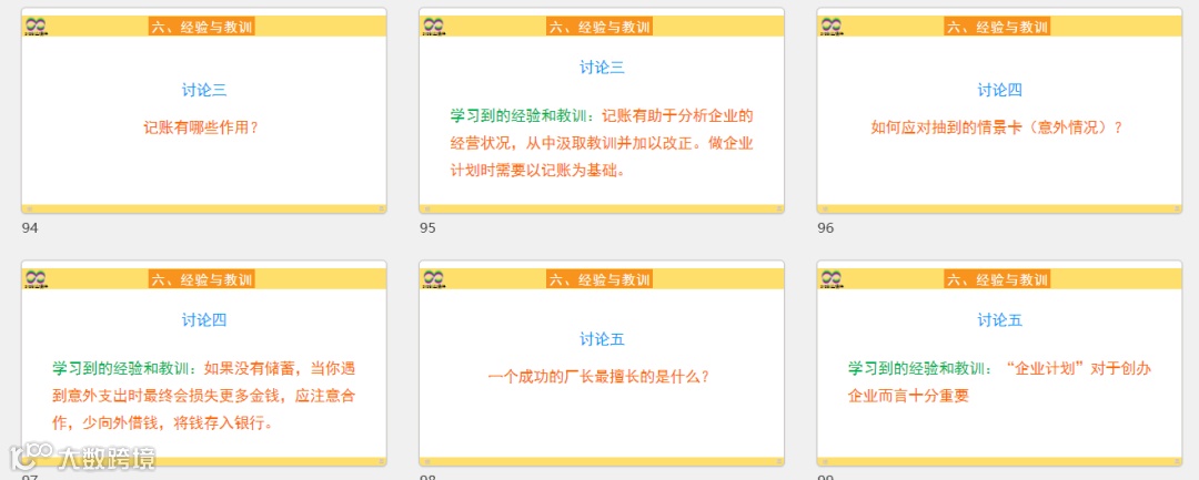 先留5分钟的时间让学员复盘、讨论,老师分别点评。