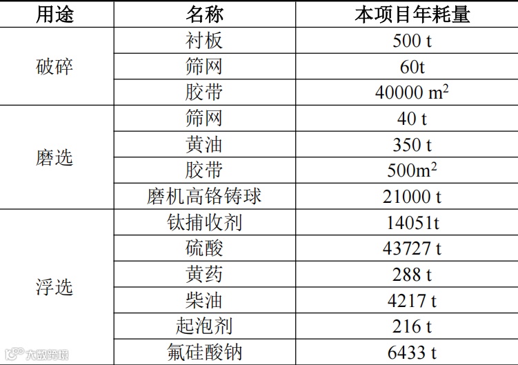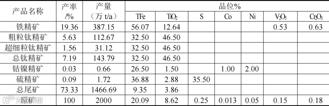 ◦ 钛精矿:TiO₂ 46.50%,产量130万t/a