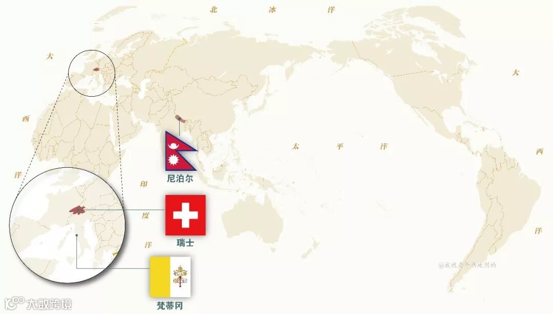 正方形的瑞士、正方形的梵蒂冈、还有世界上唯一三角形形状的尼泊尔。