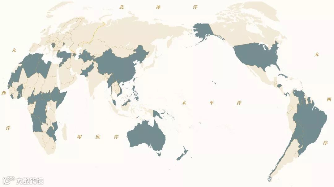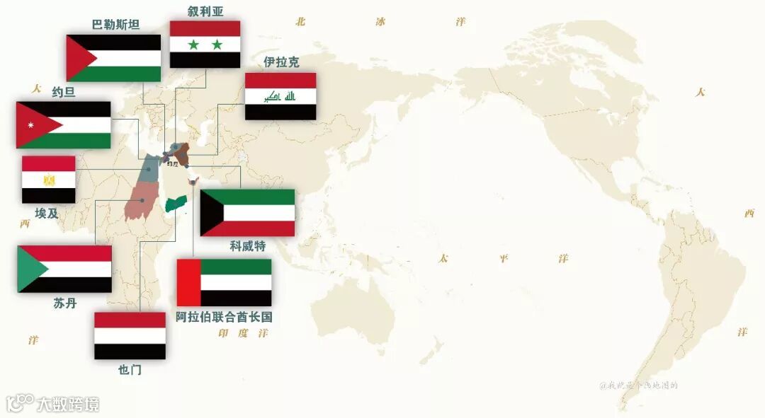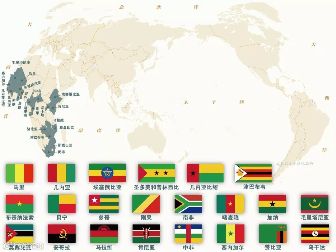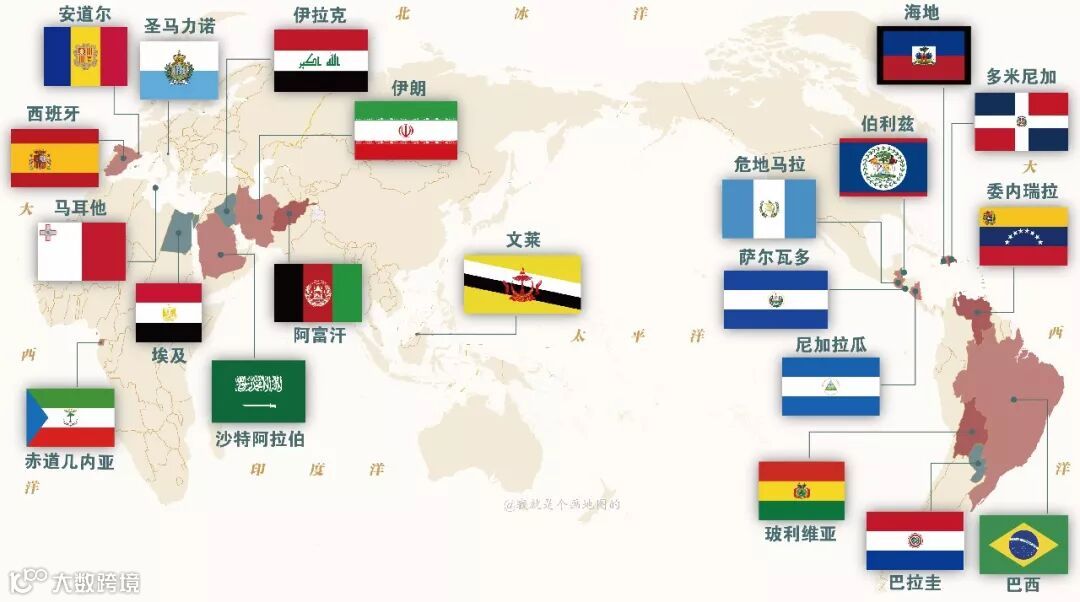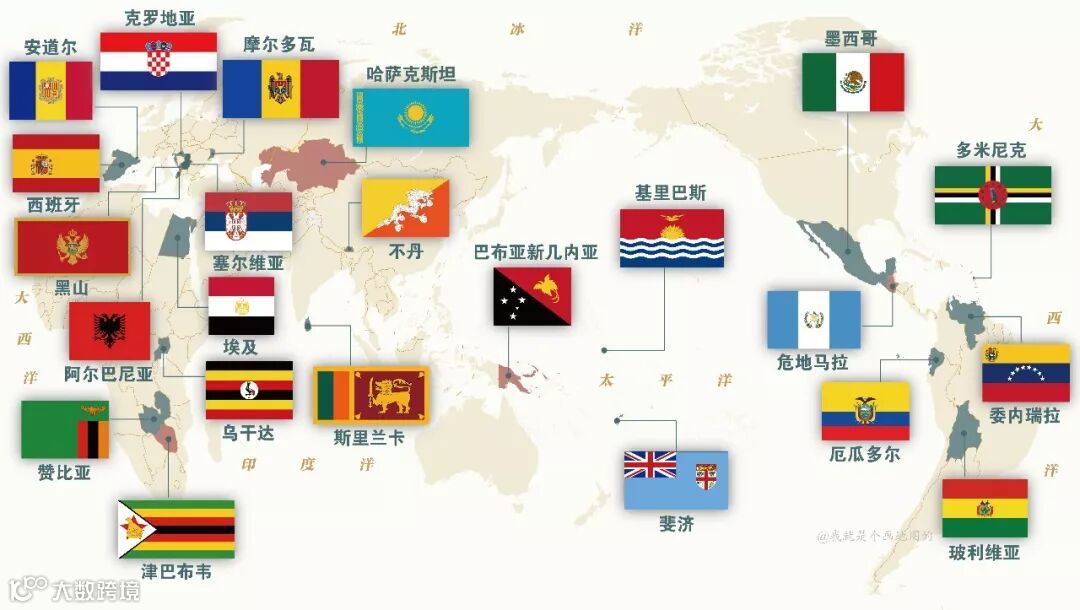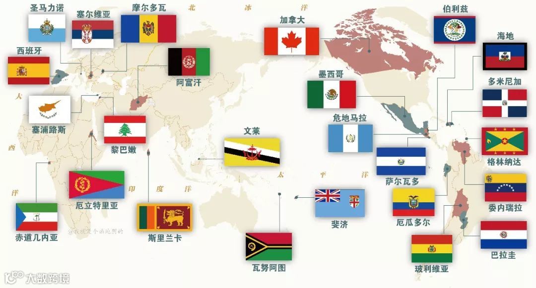 带有星星的国旗所属国家分布示意图